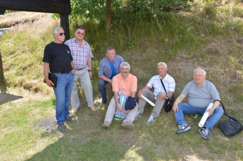 Zdjęcie – członkowie POG ZWiR WP w oczekiwaniu na rozpoczęcie strzelania z broni długiej (od lewej): Jerzy Kasica, Władysław Kowalski, Jan Rybarczyk, Janusz Czerniejewski, Stanisław Gliński i zwycięzca tej konkurencji Adam Basiński.
