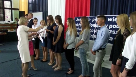 Pani Dyrektor w towarzystwie wychowawców klas wręczyła nagrody najlepszym. Świadectwa z czerwonym paskiem otrzymali: Paulina Kępka, Paulina Cupryjak i Dominika Michalak z klasy trzeciej w zawodzie technik ekonomista, Przemysław Dziubiński z klasy trzeciej w zawodzie technik ogrodnik, Monika Papierowska, Monika Zielińska i Weronika Zalewska z klasy drugiej w zawodzie technik ekonomista, Aleksandra Podsiadła z klasy drugiej w zawodzie technik ogrodnik, Aleksandra Krzyżanowska, Mateusz Horosz i Katarzyna Rogalska z klasy pierwszej w zawodzie technik ekonomista, Weronika Wojtczak z klasy pierwszej w zawodzie technik architektury krajobrazu oraz Rafał Kępka z klasy pierwszej w zawodzie technik ogrodnik. Wzruszeni rodzice odebrali listy gratulacyjne.