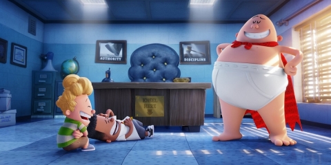 George i Harold to dwaj kumple z podstawówki, którzy uwielbiają rysować komiksy. Słyną z niezwykłej wyobraźni i niesamowitych wyczynów. Po kolejnym wygłupie dyrektor szkoły grozi, że rozdzieli kolegów, przenosząc jednego z nich do innej klasy. Niewiele myśląc George i Harold hipnotyzują dyrektora, każąc mu wierzyć, że jest wymyślonym przez nich niepokonanym i pełnym entuzjazmu, choć niezbyt rozgarniętym superbohaterem, znanym jako „Kapitan Majtas”.