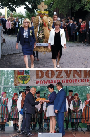 Następnie Starosta w swoim przemówieniu okolicznościowym zwrócił się do Rolników - „Pragnę z serca podziękować wszystkim rolnikom Ziemi Grójeckiej, że kultywują wspaniała wielowiekową tradycję tego regionu. To w rolniczych rodzinach szczególnie mocno zakorzenione są nieprzemijające wartości, pracowitość, przywiązanie do ziemi, wiara i patriotyzm, dzięki którym trwamy jako naród. Dzięki tym wartościom polska rodzina jest silna”. Na zakończenie złożył podziękowania za całoroczny wysiłek i zbiory, życzył zawsze udanych plonów, wytrwałości i satysfakcji z wykonywanej pracy.