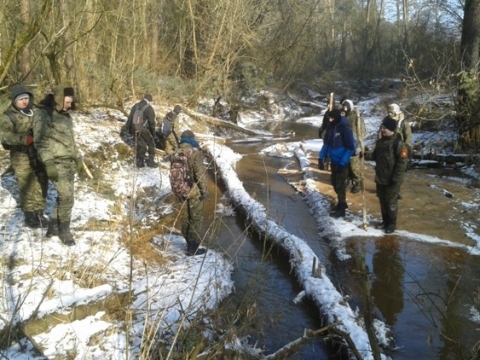 w zimowych warunkach terenowych pozwolił młodzieży zrozumieć z jakimi przeciwnościami musieli się zmierzyć żołnierze walczący z władzą komunistyczną w okresie PRL-u. Z jednej strony walka, a z drugiej ukrywanie się w niedostępnym terenie, częste zmiany obozowania jak i zależność od aury i warunków pogodowych. Uczniowie mieli możliwość zobaczenia siedlisk bobrów, w tym tamy i żeremia bobrowe. Ponadto, przećwiczono elementy walki wręcz oraz posługiwanie się bronią krótką. Dodatkową atrakcją dla młodzieży był rozegrany na zamarzniętym oczku wodnym mecz „hokejowy” bez odpowiedniego sprzętu sportowego.