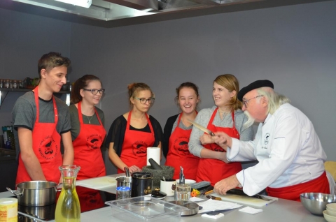 u Kurta nie ma chaosu jest po prostu praca. Wszystko działa jak w ... szwajcarskim zegarku! Kurt Scheller ma wiedzę ogromną, wyszkolił setki młodych kucharzy, absolwentów szkół kulinarnych i amatorów. Na tych warsztatach uczniowie zadawali liczne pytania dzięki czemu dowiedzieli się niemalże wszystkiego, co dotyczyło wykonywanych potraw, a cenne wskazówki zapamiętają do końca życia. Oprócz zabawy i fajnej atmosfery jest nauka przez pracę pod okiem Szefa i dla uczniów te zajęcia pozostaną bezcenną lekcją nauki zawodu.