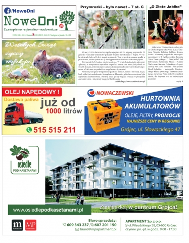 W najnowszym wydaniu poruszamy między innymi następujące tematy: Przymrozki – było nawet – 7 st. C. Podwójne uderzenie w parcha! Turniej Tańca Towarzyskiego „O Złote Jabłko”. Olimpijczycy są wśród nas... Zapraszamy do lektury: KLIKNIJ TU.