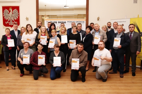 Obecni również byli przedstawiciele zwycięskich projektów Działaj Lokalnie, którzy z rąk Starosty i swoich samorządowców odbierali certyfikaty i umowy dotacyjne. Wśród gospodarzy i gości spotkania byli: ze Starostwa Powiatowego: Starosta – Krzysztof Ambroziak, Członkowie Zarządu – Paweł Siennicki, prowadzący to spotkanie Andrzej Zaręba, Jolanta Sitarek, przedstawiciele władz gminnych: Mirosław Jakubczak wójt Błędowa, Tadeusz Zakrzewski – wójt Chynowa wraz z Przewodniczącym Rady – Stanisławem Mrozem, Jarosław Rupiewicz – wiceburmistrz Grójca oraz Karol Biedrzycki – Przewodniczący Rady, Jadwiga Strączewska – Sekretarz Gminy Goszczyn oraz Piotr Sijka – Przewodniczący Rady, Marcin Manowiecki – Przewodniczący Gminy Jasieniec, Teresa Knyzio – Wiceburmistrz Warki, oraz pracownicy gmin odpowiedzialni za współpracę z organizacjami pozarządowymi z gmin Błędów, Belsk Duży, Chynów, Jasieniec, Grójec.