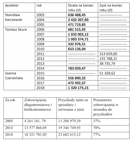 Dla zobrazowania sytuacji przedstawiam Państwu tabelę obrazującą fakt, że szpital od lat był niedofinansowany i zadłużony.