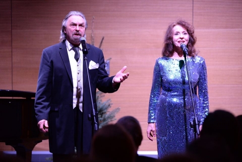 11 stycznia odbył się XXIII "Wieczór z Kulturą", w którym przypomnieliśmy wyjątkową parę artystów: Marthę Eggerth i Jana Kiepurę. Największe przeboje tej wspaniałej pary wykonali cenieni Artyści warszawskiej sceny operowej i operetkowej: Grażyna Mądroch – sopran koloraturowy i Jan Zakrzewski - tenor. Koncert poprowadziła aktorka Teresa Siewierska, akompaniował na fortepianie Adam Sychowski. W programie wieczoru znalazły się kompozycje, które Kiepurowie wykonywali razem, choćby słynny duet z „Wesołej wdówki” Fr. Lehara. Warto przypomnieć, że właśnie „Wesołą wdówkę” na Broadway’u, w Majestic Theatre para wykonała razem około 2000 razy! W programie wieczoru znalazły się utwory Fr. Lehara, R. Stoltza, I. Kalmana, C. Millockera. Przeboje takie jak „Dla Ciebie śpiewam tę pieśń”, „Pokochaj mnie”, Czardasz z filmu „Carmen blonde”, czy piosenki włoskie i neapolitańskie (O sole mio…) brawurowo wykonali Grażyna Mądroch z Janem Zakrzewskim. W programie koncertu nie zabrakło słynnego „Kujawiaka” Wieniawskiego. Wspaniałym dopełnieniem wieczoru były opowieści z ciekawostkami z życia prywatnego i scenicznego artystów, w wykonaniu Teresy Siewierskiej.
