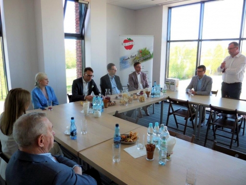 Na wstępie Prezes Grupy Rajpol -Hubert Woźniak przybliżył gościom dzieje firmy, po czym przedstawiono strategię rozwoju na najbliższe lata i plany związane z kierunkami produkcji zrzeszonych sadowników, co spotkało się z zainteresowaniem ze strony przedstawicieli Lidla.