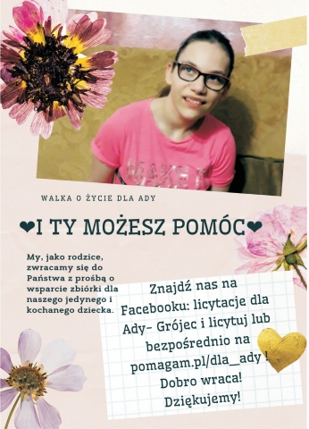 Prosimy i serdecznie zachęcamy wszystkich ludzi o dobrym sercu do licytacji i wstawiania fantów dla Ady.