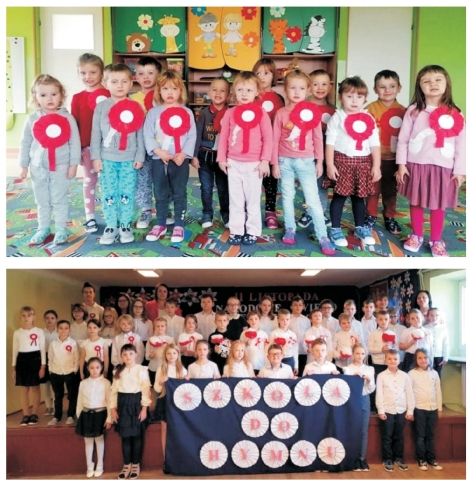 Przedstawiciele szkół i przedszkoli wspólnie z dyrektorami i nauczycielami wzięli udział także w obchodach gminnych. Podczas uroczystości patriotyczno - religijnej modlono się wspólnie za Ojczyznę, złożono kwiaty przy grobie współtwórcy Niepodległości księcia Zdzisława Lubomirskiego i poległych żołnierzy 44PP 13DP i odśpiewano wspólnie "Mazurek Dąbrowskiego".