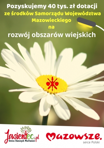 Gmina Jasieniec zdobywa 40 tys. dotacji ze środków Samorządu Wojewodztwa Mazowieckiego na realizację czterech przedsięwzięć w ramach „Mazowieckiego Instrumentu Aktywizacji Sołectw MAZOWSZE 2022" (wszystkie wnioskowane), zabezpieczając i przeznaczając jednocześnie na ten cel kolejne ok. 40 tys. zł środków własnych, zatwierdzonych przez Radę Gminy Jasieniec.