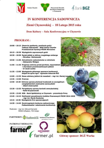 18.02.2015 odbędzie się IV Konferencja Sadownicza Ziemi Chynowskiej.