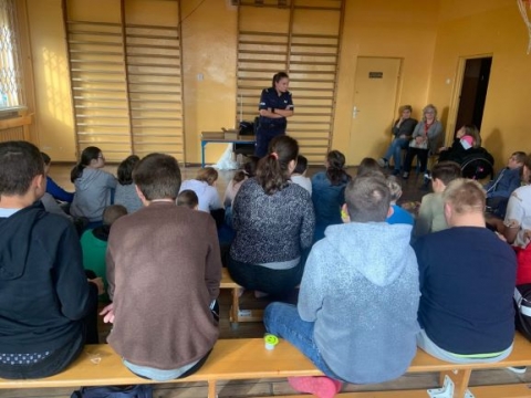 Wczoraj st. sierż. Paulina Mazur dzielnicowa grójeckiej komendy przeprowadziła spotkanie profilaktyczne dla uczniów w Zespole Szkół Specjalnych w Grójcu.