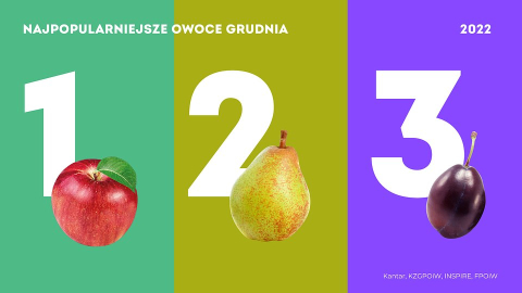 Wśród najpopularniejszych gatunków grudnia Kantar wymienia jabłka, gruszki, śliwki, borówki i maliny, wśród warzyw cebule, pomidory, paprykę i ogórki. W porównaniu do grudnia 2021 roku najbardziej wzrosło spożycie borówek, malin i śliwek. W porównaniu do grudnia 2020 roku wzrost ilości konsumentów borówki wyniósł aż 56%. Wśród warzyw wzrosło spożycie papryki, pieczarek i ogórka. W przypadku papryki wzrost ilości konsumentów w skali dwóch lat wyniósł 12%. Mimo tego jedynie 15% Polaków odżywiało się w grudniu zgodnie z zaleceniami - minimum połowę tego, co jedli stanowiły warzywa i owoce. Dane dotyczące konsumpcji kilkudziesięciu gatunków owoców i warzyw dostępne są na stronie WczorajNaTalerzu.pl