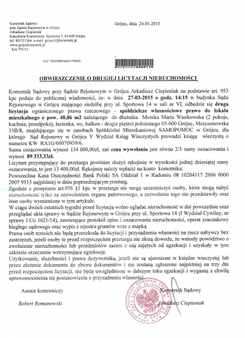 Obwieszczenie o drugiej licytacji nieruchomości (Km 795/13)
