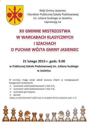 XII GMINNE MISTRZOSTWA W WARCABACH KLASYCZNYCH I SZACHACH O PUCHAR WÓJTA GMINY JASIENIEC.