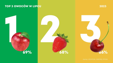 W lipcu najpopularniejszym owocem były jabłka, truskawki i czereśnie. Owoce każdego z tych gatunków jadło przynajmniej 2 na 3 Polaków.