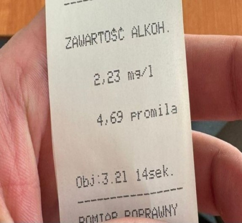 We wskazane miejsce pojechali policjanci z Posteurunku Policji w Mogielnicy. W Śmiechówku zauważyli opisany pojazd i zatrzymali go do kontroli. Sposób w jaki zachowywał się kierowca - świadczyły o tym, że może być on nietrzeźwy. Badanie alkomatem pokazało, że 31-latek w organizmie miał 4,69 promila alkoholu. Grozi mu kara do 3 lat więzienia, sądowy zakaz prowadzenia pojazdów i wysoka grzywna.