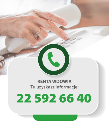 Pod numerem: 22 592 66 40 w godzinach od 9 do 14 w dni powszednie możesz uzyskać wszelkie informacje na temat zasad przyznawania renty wdowiej.