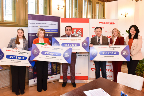 W dniu 7 marca 2025 roku Wójt Gminy Błędów Mirosław Jakubczak oraz Skarbnik Gminy Błędów Agnieszka Bilska podpisali umowę z Marszałkiem Województwa Mazowieckiego Panem Adamem Struzikiem na dofinansowanie zadań: