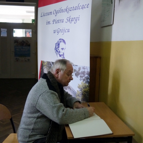 Na zakończenie wizyty w grójeckim Liceum członkowie Trybunału procesu beatyfikacyjnego wpisali się do księgi pamiątkowej. We wpisie, księża podziękowali dyrektorowi i współpracownikom za ciepłe przyjęcie, oraz napisali, że podziwiają troskę o zachowanie pamięci i szerzenie myśli naszego wielkiego rodaka.