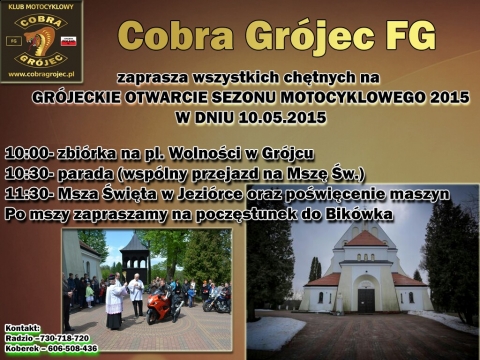 Grójeckie otwarcie sezonu motocyklowego, odbędzie się w dniu 10.05.2015 na Placu Wolności.