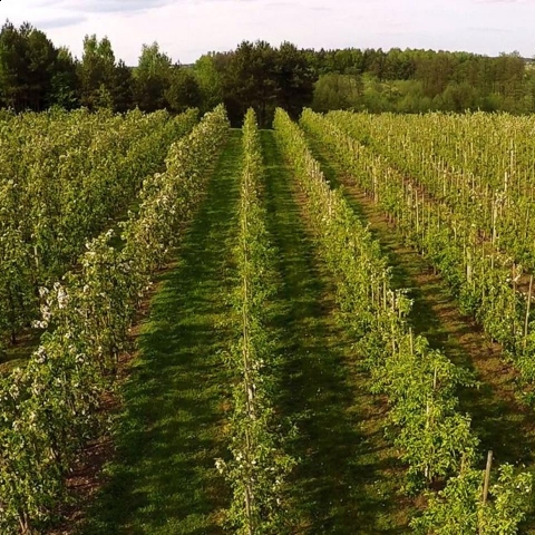 Sady jabłoni w Lewiczynie z perspektywy drona