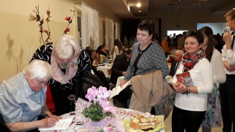 Słuchając muzyki, można było - jak w eleganckiej, nastrojowej kawiarence – napić się kawy, herbaty i skosztować domowego ciasto przygotowanego przez rodziców uczniów. Goście byli pod wrażeniem wysokiego poziomu przygotowanej uroczystości. Wielu nie kryło wzruszenia. Po zakończeniu części artystycznej najwięcej pracy miała Izabela Frasz, gdyż każdy chciał mieć w zakupionym tomiku dedykację Autorki.