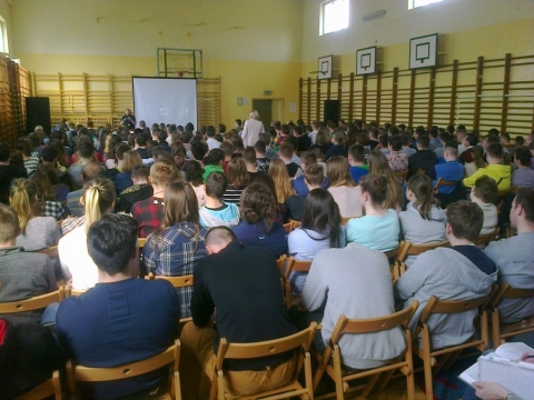 W Zespole Szkół Ponadgimnazjalnych im. Armii Krajowe Obwodu "Głuszec" - Grójec odbyło się spotkanie dla uczniów i nauczycieli dotyczące właściwego zachowania w przypadku wystąpienia zagrożeń o charakterze terrorystycznym.
