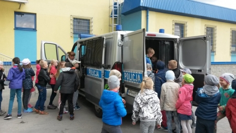 Policjanci prowadzą wiele spotkań z młodzieżą w szkołach. Tym razem to uczniowie odwiedzili policjantów. Dużo radości sprawiło dzieciom oglądanie służbowego radiowozu, do którego mogli wejść, usiąść na miejscu kierowcy lub na miejscach przeznaczonych dla osób zatrzymanych, włączyć sygnały i pozdrowić kolegów i koleżanki przez zamontowane w radiowozie nagłośnienie. Dzieci miały również okazję przymierzyć umundurowanie, wykorzystywane m.in. podczas zabezpieczania imprez sportowych.