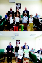 Wójt Władysław Piątkowski wraz z Przewodniczącm Rady Gminy Bogusławem Sikorskim oraz Maria Walewską-Żółcik, dyrektor GZOPO przed obradami sesji Rady Gminy wręczyli nagrody w konkursie plastycznym organizowanym przez KRUS „Bezpiecznie na wsi to podstawa – środki chemiczne to nie zabawa”, który miał zwrócić uwagę uczniów wiejskich szkół podstawowych na zagrożenia związane z obecnością w gospodarstwie rolnym substancji chemicznych.