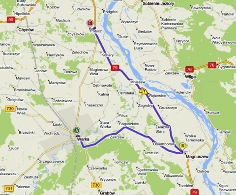 W miejscowości Warka, z uwagi na blokadę w Piasecznie zalecany objazd przez Zakrzew, Magnuszew, Mniszew do Potycz,