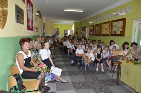 Uroczystość rozpoczęła się tradycyjnie od Mazurka Dąbrowskiego i przekazania sztandaru. Pani dyrektor Małgorzata Krasuska powitała całą społeczność szkolną, rodziców i znamienitych gości, tj. proboszcza parafii św. Prokopa Opata w Błędowie - Leszka Brulińskiego, sekretarza Gminy Błędów - Jacka Adamskiego oraz radnego powiatu grójeckiego - Marka Kowalczyka. Następnie przystąpiono do rozdania uczniom świadectw, a także dyplomów oraz nagród książkowych, które zostały ufundowane przez prężnie działającą Radę Rodziców.