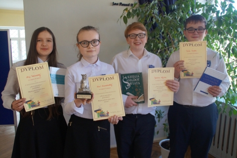 Uczniowie szkoły z Zaborowa rozłożyli rywali na łopatki! Wszyscy uplasowali się na podium. Sięgnęli po najwyższe laury. I miejsce zdobyła Oliwia Lewandowska, otrzymała tytuł Mistrza Wiedzy Polonistycznej 2019 oraz statuetkę Sowy, miejsce II zajęli ex aequo: Alicja Kalinowska, Paweł Dudek i Joachim Wójcik. Uczniowie otrzymali pamiątkowe dyplomy, nagrody książkowe oraz słodycze.