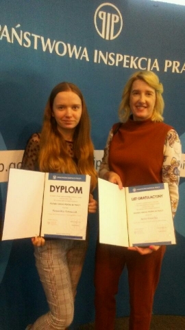 Gratulujemy Weronice, że należy do grona najlepszych uczniów z całej Polski w zakresie wiedzy dotyczącej prawa pracy. Konkurs ten jest następstwem realizowanego przez Zespół Szkół Ponadgimnazjalnych w Jasieńcu programu edukacyjnego „Kultura bezpieczeństwa”. W tym roku Zespół Szkół Ponadgimnazjalnych po raz piąty brał udział w tym konkursie