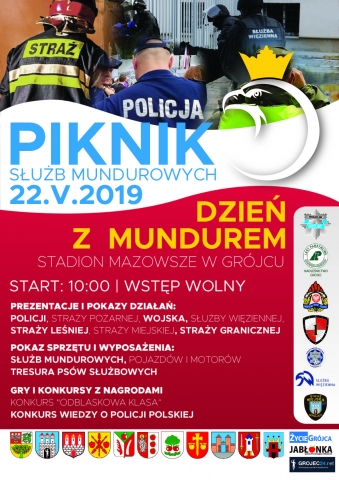 "Dzień z mundurem" odbędzie się w dniu 22 maja 2019 roku w godz. 10.00-13.00 na stadionie Mazowsze przy ul. Laskowej w Grójcu. Przygotowano wiele atrakcji, m. in. pokazy i konkursy dla dzieci i młodzieży.