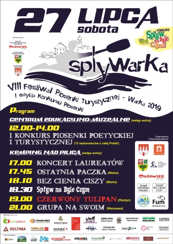 W sobotę 27 lipca w Warce odbędzie się VIII Festiwal Piosenki Turystycznej „SpłyWarka”, V Spływ na Byle Czym Rzeką Pilicą oraz po raz pierwszy Konkurs Piosenki Poetyckiej i Turystycznej. To będzie niezwykła uczta zarówno dla miłośników piosenki poetyckiej, studenckiej i turystycznej ale również dla tych, którzy lubią dobrą zabawę, humor i odrobinę szaleństwa…