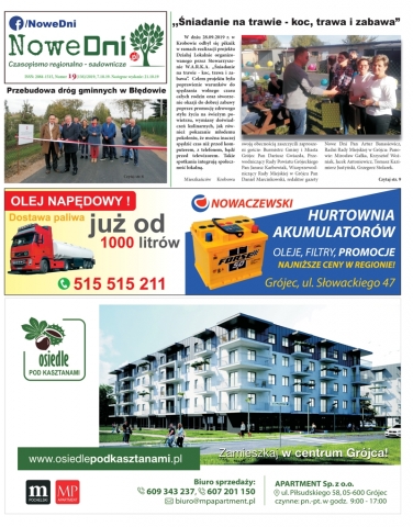 ,,Śniadanie na trawie - koc, trawa i zabawa”. Przebudowa dróg gminnych w Błędowie. Mistrz Kuchni - Karol Okrasa w sadach RAJPOLU. I. Festiwal Owoców w Jasieńcu. Zobacz o czym jeszcze piszemy w 136 wydaniu gazety Nowe Dni. Zapraszamy do lektury: KLIKNIJ TU.