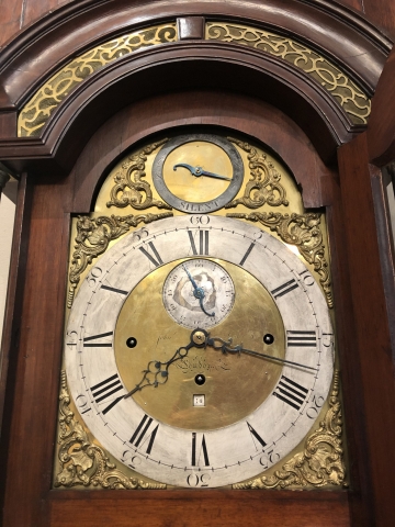 1. zegar szafkowy stojący, John Taylor/Londyn, Anglia, XVIII w., zdobiony rokokowymi okuciami z brązu, z trójczęściową szafką, z mechanizmem kwadransowym, z 8 dzwonkową pozytywką. Poza konserwacją obudowy, zdobień i uruchomieniem mechanizmu, zostanie nareperowana pozytywka. Zegar będzie chodził i wygrywał melodyjki;