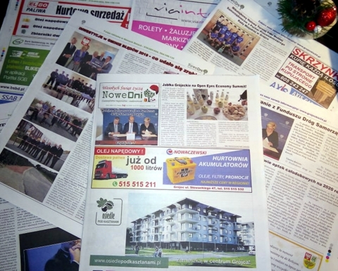 Kolejne dofinansowanie z Funduszu Dróg Samorządowych. Jabłka Grójeckie na Open Eyes Economy Summit! Nie zatrzymał się do kontroli, był pijany. Zapraszamy do SP ZOZ w Nowym Mieście nad Pilicą. INWESTYCJE w GMINIE BŁĘDÓW 2019 - co udało się zrobić? Odbiór boiska w Zaborowie. Koncert zespołu DUUGI. Mikołajkowy Halowy Turniej Piłki Nożnej Samorządowców o Puchar Przewodniczącego Rady Miejskiej w Grójcu. Zobacz o czym jeszcze napisaliśmy w 141 wydaniu gazety Nowe Dni. Zapraszamy do lektury: KLIKNIJ TU.