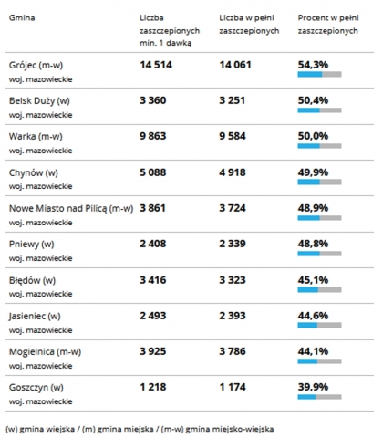 Poziom zaszczepienia mieszkańców w gminach powiatu grójeckiego przeciw koronawirusowi.