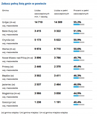 Poziom zaszczepienia mieszkańców w gminach powiatu grójeckiego przeciw koronawirusowi.