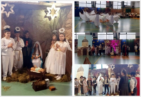 W wyjątkowej roli Pana Boga wystąpił Bartosz Betcher, Adama i Ewę zagrali Jakub Kacprzak i Izabela Katana. W niewdzięcznej roli szatana wystąpił Jakub Faliszewski. Gdy Ewa walczyła z pokusą skosztowania owocu usłyszeliśmy Requiem for a Dream Mozarta i rozpoczął się przepiękny taniec diabłów w wykonaniu klasy 3b pod kierunkiem Pani Joanny Czernickiej. Po słowach Boga: Wprowadzam nieprzyjaźń między Ciebie a niewiastę, pojawiła się Maryja i Archanioł Gabriel w scenie Zwiastowania. Następnie zjawili się pastuszkowie i aniołowie, Józef, trzej Mędrcy oraz ludzie z różnych stron świata, w których wcielili się uczniowie klasy 3d. Przepięknym akcentem była scena pojawienia się aniołów, którzy zatańczyli taniec do piosenki "Mario, czy Ty wiesz" TGD i Kuby Badacha. W tej roli uczniowie klasy 5b pod kierunkiem Pani Agaty Felczak Sadowskiej.