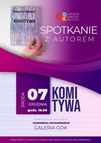 Spotkanie z poetą, członkiem Związku Literatów Polskich, autorem książki pt. ''Komitywa'' Kazimierzem Kochańskim. Spotkanie odbędzie się w środę 07.12.2022r. o godz. 18:00 w Klubie Artystycznym ''Galeria'' GOK.