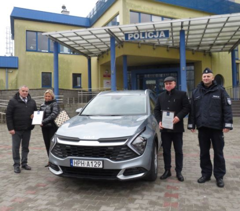 W poniedziałek odbyła się prezentacja i przekazanie nowego radiowozu marki KIA Sportage policjantom z Grójca. Komendant Powiatowy Policji w Grójcu mł. insp. Wojciech Bednarski spotkał się z Panią Martą Cytryńską Wójt Gminy Jasieniec oraz Panem Władysławem Piątkowskim Wójtem Gminy Belsk Duży i Panem Bogusławem Sikorskim Przewodniczącym Rady Gminy w Belsku Dużym.