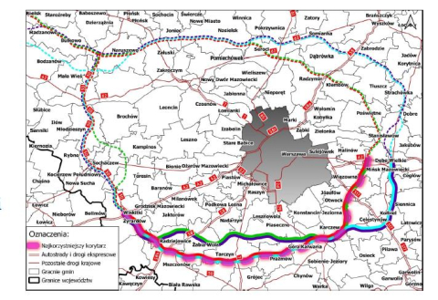 Udostępnione materiały na etapie studium korytarzowego (2019) wskazywały na najkorzystniejszy przebieg wariantu korytarza Obwodnicy Aglomeracji Warszawskiej A50 na odcinku autostrada A2 (CPK) – Góra Kalwaria – A2 Mińsk Mazowiecki, który nie obejmował gminy Grójec (węzeł Tarczyn Południe)