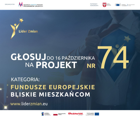 Jest nam niezmiernie miło poinformować, że nasz projekt został pozytywnie zakwalifikowany do udziału w konkursie "Lider Zmian Funduszy Europejskich 2023".