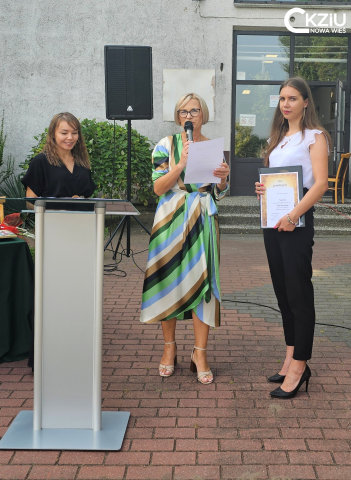 Pani dyrektor w swoim wystąpieniu podkreśliła, że priorytetem naszej szkoły jest jak najlepsze przygotowanie uczniów do wybranych zawodów, w atmosferze życzliwości, współpracy i wzajemnego zaufania. Wspomniała także, że właściwie realizowane procesy dydaktyczne skutkują licznymi sukcesami naszych podopiecznych i wyróżniają CKZiU w Nowej Wsi wśród okolicznych szkół. Dlatego pani dyrektor podziękowała uczniom klas pierwszych za wybór Centrum i rozpoczęcie kolejnego etapu edukacyjnego w naszej szkole. Niemal siedemdziesiąt osób będzie kształcić się w zawodach: technik architektury krajobrazu, technik reklamy, technik spedytor i technik organizacji turystyki.