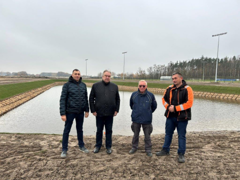 Informujemy, że dobiegają końca prace związane z budową stawu w miejscowości Drwalew. Na działce gminnej zlokalizowanej przy stadionie powstaje zbiornik wodny o powierzchni 5000 m2.