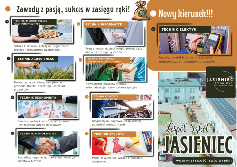 Wybierz kierunek, który Cię kręci i zaczynaj swoją przygodę z nami – Zespół Szkół w Jasieńcu