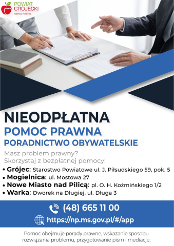 Nieodpłatna pomoc prawna i poradnictwo obywatelskie w Powiecie Grójeckim